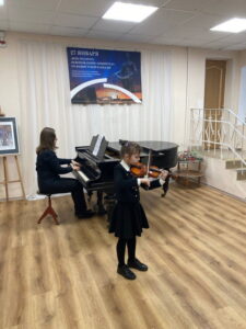 В исполнении учащихся – лауреатов международных и городских конкурсов Ильи Солодуненко, Антона Солодуненко,  Таисии Корчагиной, Елизаветы Гайворонской) прозвучала музыка любимых русских композиторов: П.Чайковского, С. Рахманинова и других)