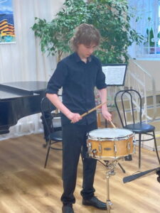 В концерте выступали учащиеся — победители городских конкурсов: Виктория Ткаченко (фортепиано), Владимир Смольский (ударные). Исполнители на народных инструментах — Беленицкая Виталия, Серков Григорий порадовали слушателей русскими народными напевами.