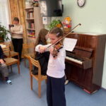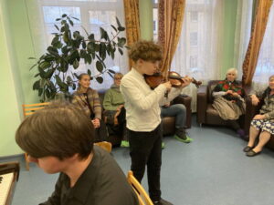 Юные музыканты исполнили произведения композиторов-классиков П. Чайковского, С. Рахманинова, М. Глинки, которые близки и понятны пожилым слушателям. Яркие, хорошо знакомые народные напевы, которые всегда вызывают улыбки на лицах пожилых людей.