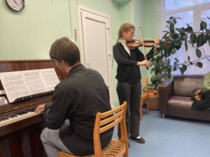 В исполнении учащихся – лауреатов международных и городских конкурсов Ильи Солодуненко, Антона Солодуненко,  Таисии Корчагиной, Елизаветы Гайворонской) прозвучала музыка любимых русских композиторов: П.Чайковского, С. Рахманинова и других)